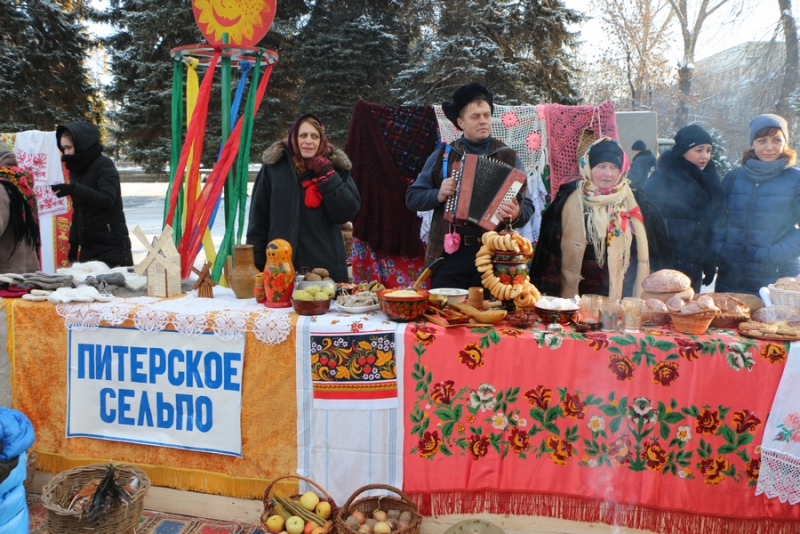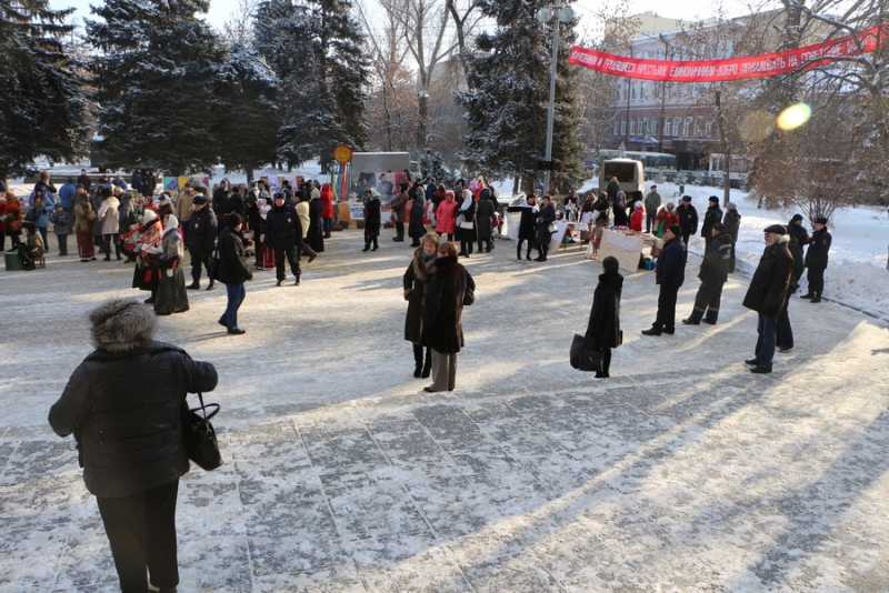 Перед торжественной церемонией, которая должна состояться в театре, организаторы решили удивить гостей ярмаркой в стиле 1930-х годов. Для этого на площадке перед зданием развернули работу нескольких продовольственных лавочек, за которыми стояли торговцы, наряженные в колхозников. Все они предлагали различную сельхозпродукцию, привезенную из районов области. Особый колорит этому действу придавали люди с лотками в руках, которые были наполнены рыбой, раками или пирожками. Они краткими стишками рекламировали свой товар и зазывали покупателей на ярмарку.