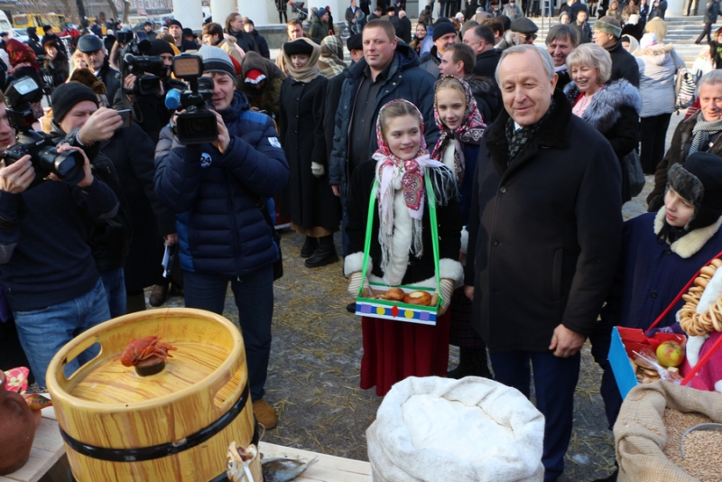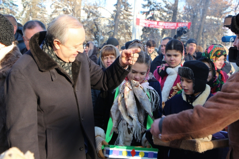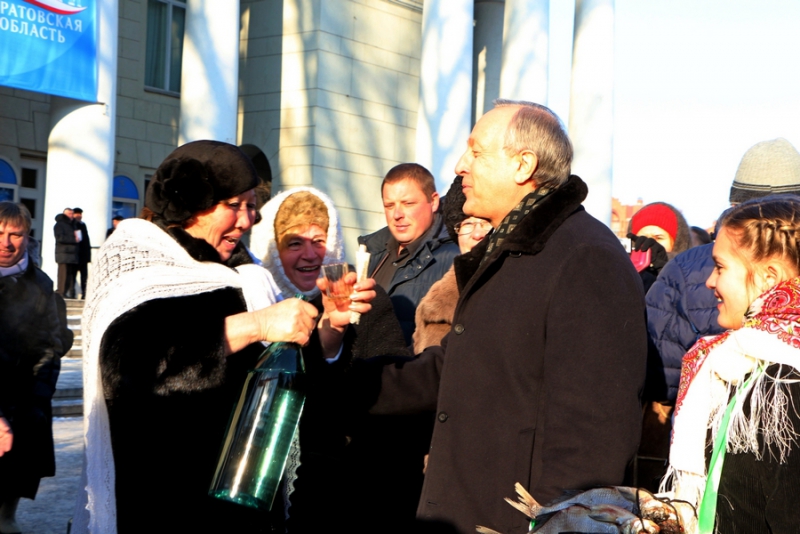 В качестве почетного гостя на ярмарке побывал губернатор Валерий Радаев. Его встретили со всем уважением, а участники мероприятия сделали все, чтобы погрузить его в ту эпоху. Главе региона в каждой лавке предлагали отведать то или иное угощение. Кто-то намеревался накормить его вареными яйцами из деревни, кто-то яблоками, кто-то всучил ему связку сушеной рыбы. Радаев принимал с улыбкой все подарки, но тут же передавал их окружившим его детишкам.