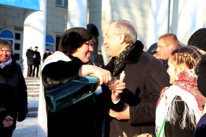 В честь 80-летия области губернатора угощали огурчиками, сушеной рыбой и «водкой»