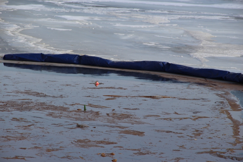 Руководитель облспаса также рассказал, что на месте происшествия выставляют специальные боновые заграждения, чтобы жидкость не распространялась вниз по течению.