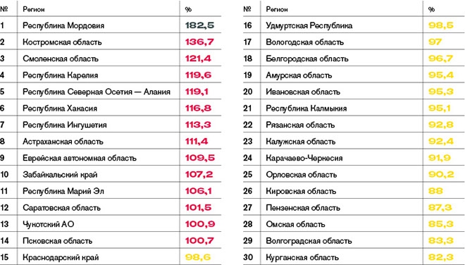 Наихудшая ситуация в республике Мордовия, где долг больше дохода на 82,5%, а также в Костромской области – на 36,7% и в Смоленской области – на 21,4%. Совершенно не имеют долгов Севастополь и Сахалинская область.
