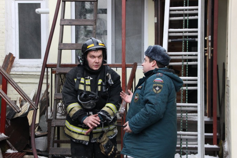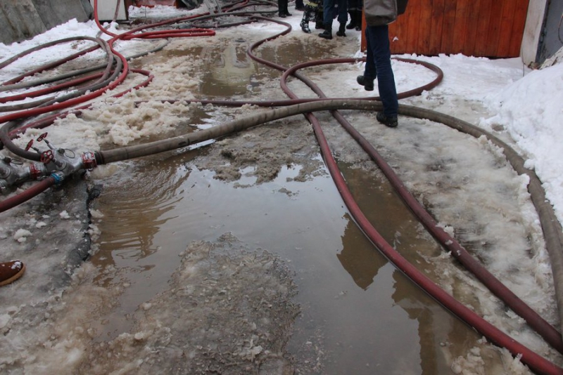В настоящее время полицейские оцепили место происшествия. Из соседствующего с очагом возгорания здания выносят вещи и эвакуируют людей. По предварительной информации ГУ МЧС, пострадавших нет. С огнем борются 6 пожарных расчетов. Огнеборцы вскрывают кровлю пристройки и занимаются проливкой здания.