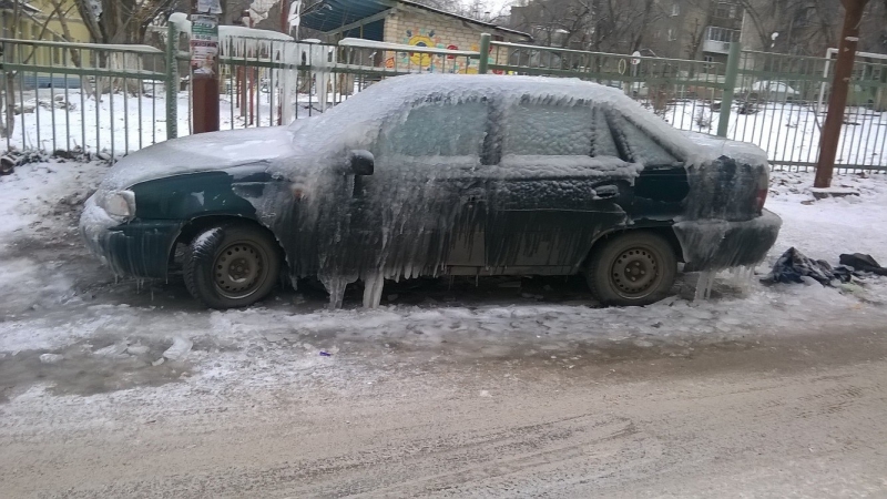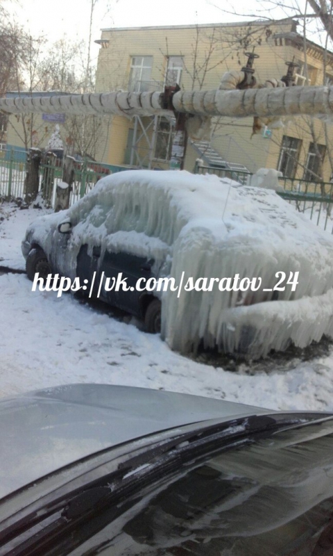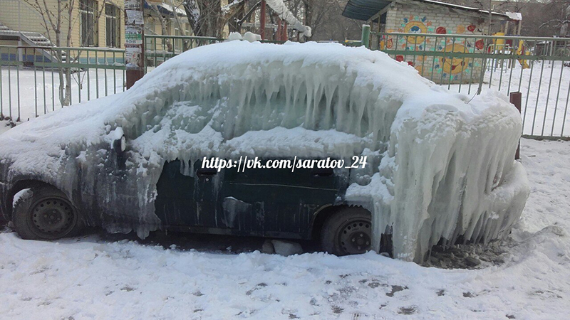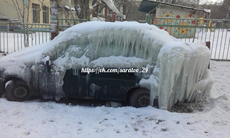 В Ленинском районе Саратова брошенный автомобиль становится местной достопримечательностью из-за толстого слоя льда, который периодически образуется на корпусе машины. Порой наледь обретает необычный вид, а во время оттепели глыбы льда спадают на землю. Это не остается без внимания очевидцев.