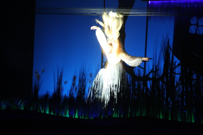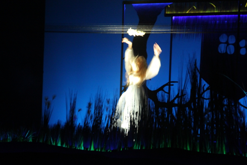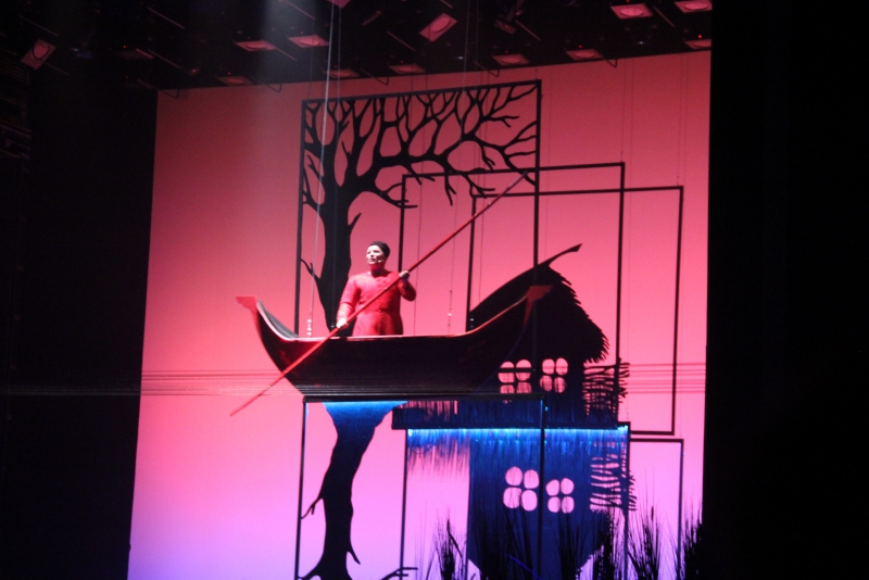 Надо сказать, что постановщики с лихвой использовали все технические возможности сцены ТЮЗа. Зрители насмотрелись и на парящие лодки, летающий гроб, катающегося на луне Черта и многое другое.