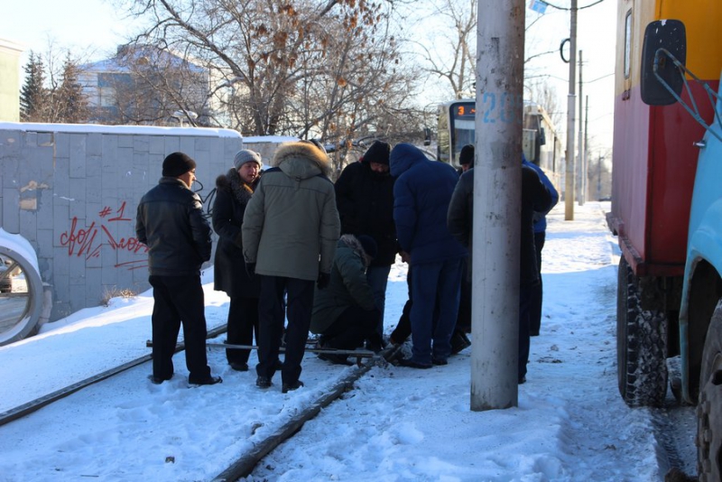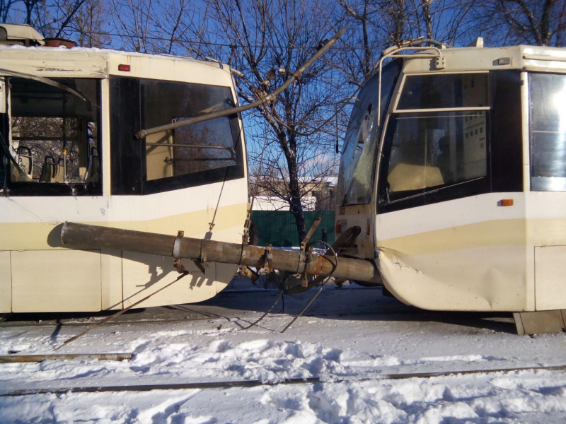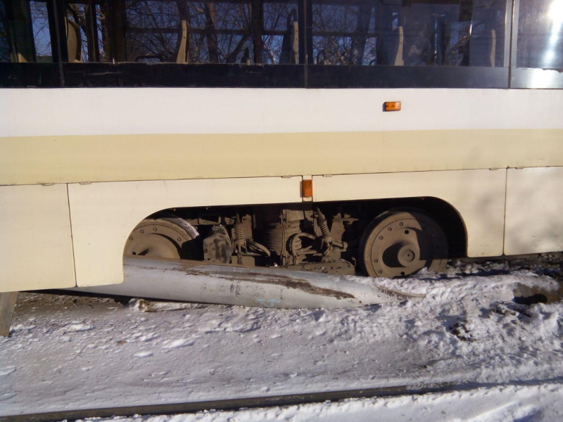 Напомним, сегодня в районе остановки «Вишневая» трамвай маршрута №3 сошел с рельсов и врезался в опору контактной сети.
