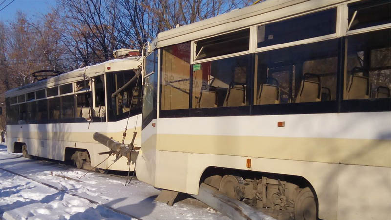 В Саратове трамвай №3 протаранил столб. Есть раненые