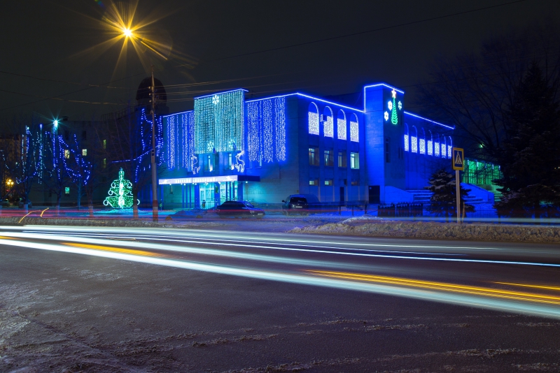Примерили новогодний наряд и другие спортивные объекты Энгельсского района. Невозможно не остановить взгляд на здании бассейна «Лазурный». Вечером здесь зажигаются тысячи огней гирлянд. Светодиодные конструкции на фасаде и у входа выполнены в форме елок, снежинок, сказочных оленей.