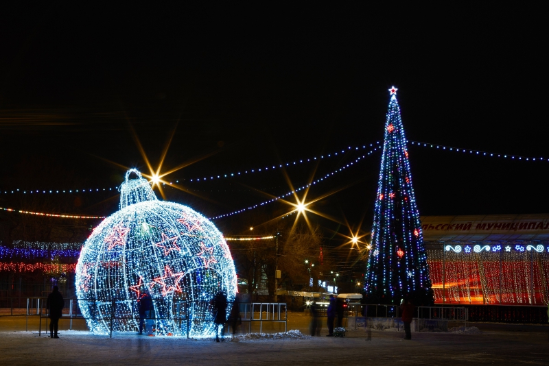 В преддверии праздников на главных энгельсских улицах зажглось более 600 световых модулей, свыше 15 тысяч метров гирлянд. Город украшают свыше 200 световых перетяжек новогодней направленности.