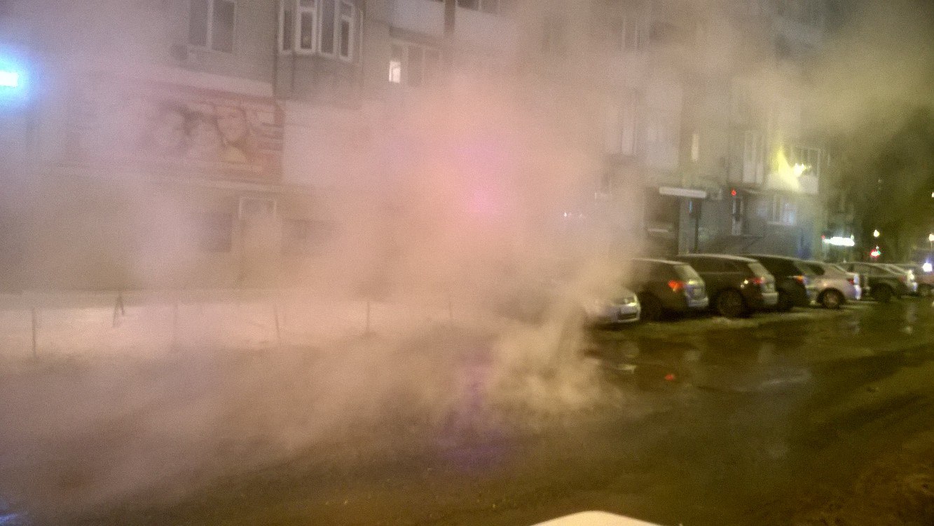 Сегодня ночью на улице Советская в центре Саратова наблюдалось сильное ухудшение видимости из-за пара от теплотрассы. Фотографии парящего «царства» возле Детского парка прислали в редакцию «Дорожного контроля» жители города.