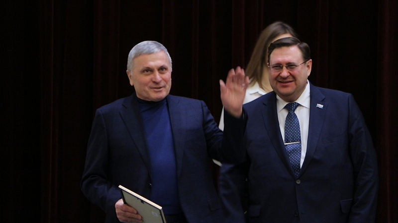 В честь юбилейной даты председатель гордумы Сергей Наумов вручил благодарственные письма и памятные подарки депутатам прошлых созывов. Первым был награжден Юрий Аксененко, затем бывший гордеп, ныне депутат облдумы от КПРФ Сергей Афанасьев.