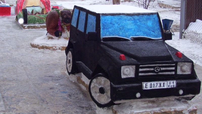 Саратовские зэки слепили себе из снега крутой черный внедорожник