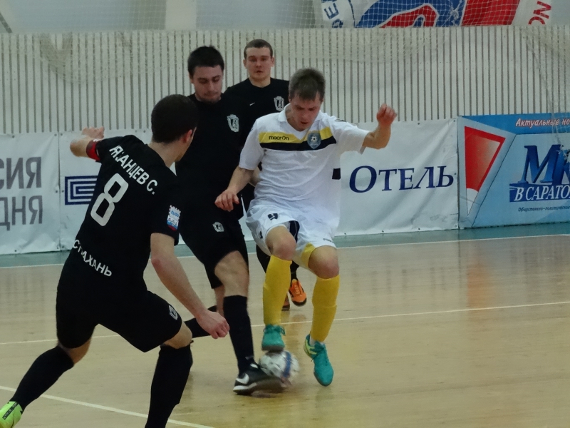 Первой в сезоне-2016/17 домашней победы саратовцы добились без играющего тренера Дениса Крутикова, основного вратаря Петра Понасенко и защитника Данилы Коршунова. Счет они открыли на 15-й минуте усилиями Максима Краснобаева, в начале второго тайма позволили астраханскому «Хазару» перехватить инициативу и сравнять счет. Лишь после этого положительный результат закрепили Андрей Панкратов (44-я, 48-я минуты - НА ФОТО 61) и Никита Горбунов (47-я). Итог матча - 4:1 в пользу саратовцев.