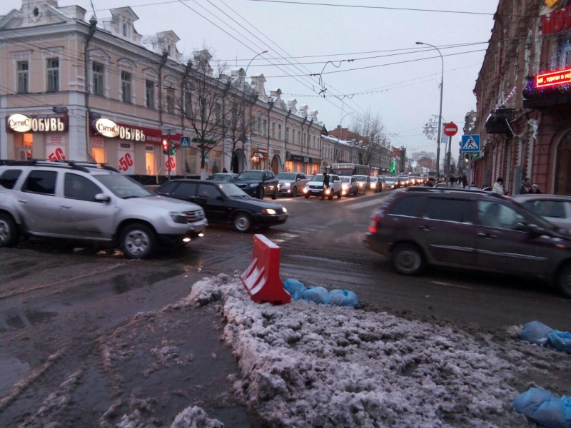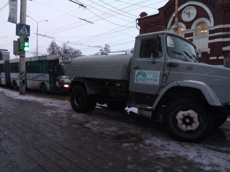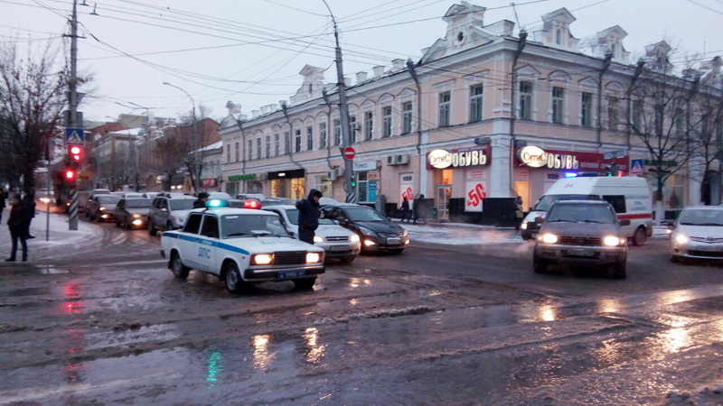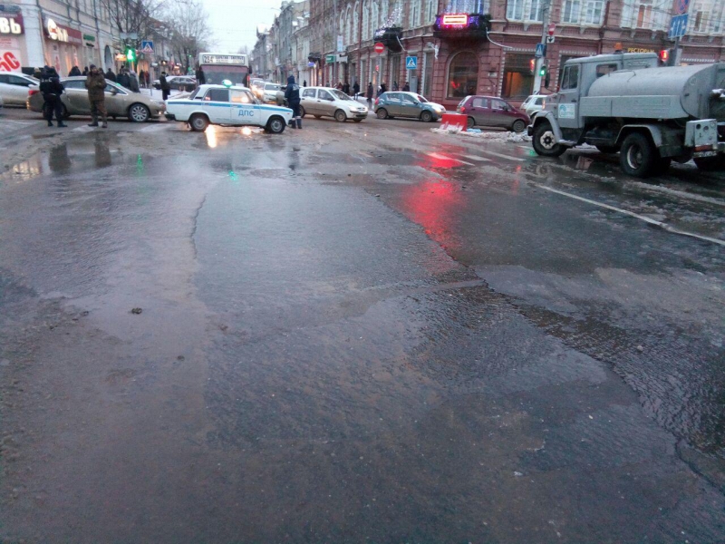 Сотрудники ГИБДД регулируют движение транспорта, для проезда по Московской на аварийном участке допускают только общественный транспорт.