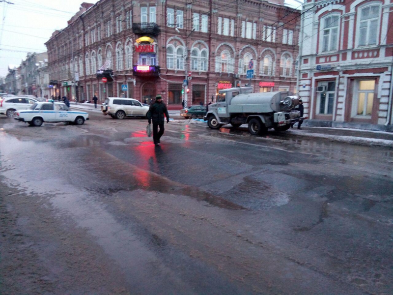 Сегодня в центре Саратова произошел прорыв коммуникаций на улице Московская. Авария произошла напротив комплекса правительственных зданий. На проезжей части оказался вспученным асфальт и из трещины происходит интенсивный излив воды. По приблизительным прикидкам, длина трещины уже составляет около 3-х метров.