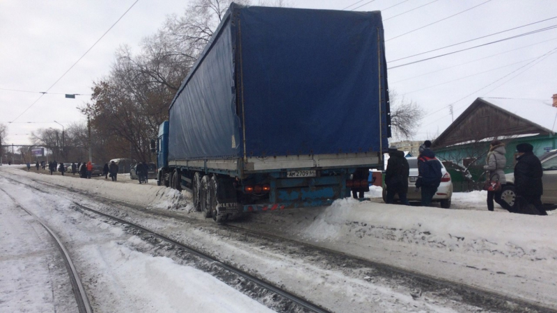 Напомним, что грузовой автомобиль оказался на рельсах около 15.00. Судя по фотографиям в соцсетях, фура задней частью наскочила на сугроб с левой стороны по ходу движения и съехала на пути. Это могло произойти из-за ледяного наката, по которому скатилась машина.