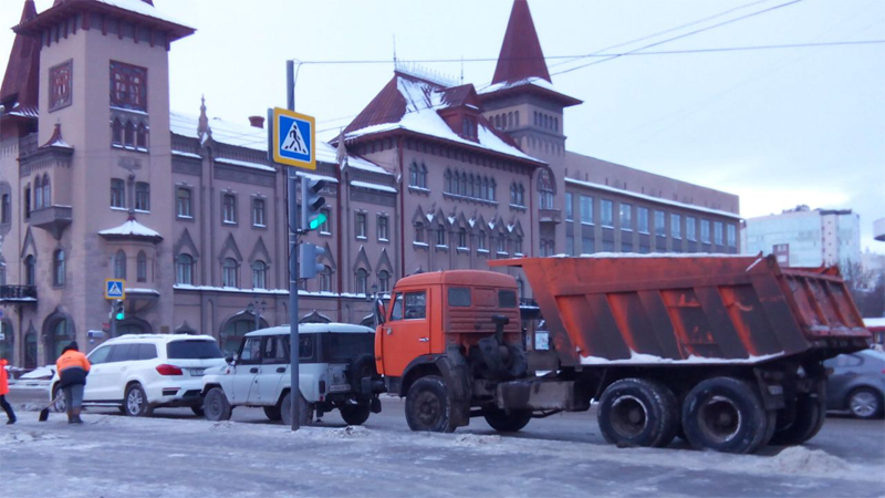 Сегодня утром на улице Радищева в центре Саратова серьезно затруднено движение из-за работ по очистке от снега площади Н.Г. Чернышевского. Как сообщает корреспондент ИГ «Четвертая Власть» с места событий, 4-5 «КамАЗов» перекрыли одну полосу движения, также замечены несколько «Бобкетов» и больше десятка рабочих, которые отчищают пешеходную зону «до блеска».