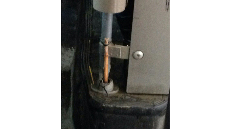На фотографии, которую прикрепил к посту мужчина, видно, как отваливающийся поручень «для надежности» привязан чем-то наподобие толстой нитки или небольшого хомута к воткнутой рядом ветке дерева.