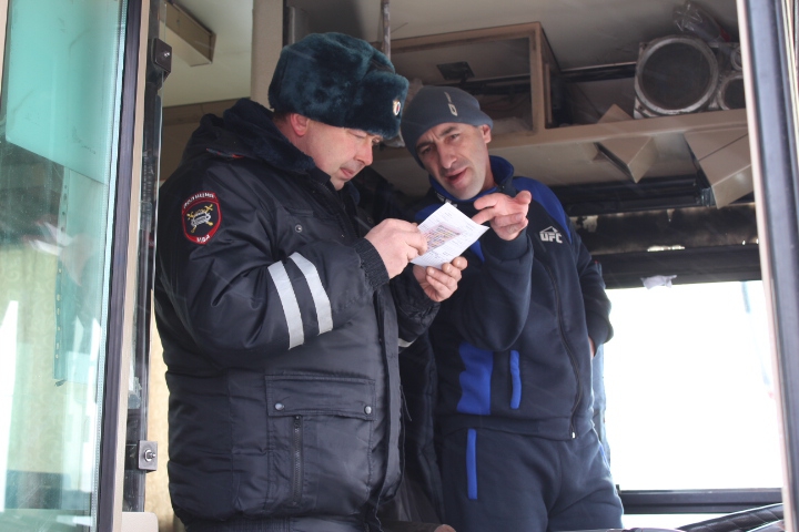 Так, на одной из конечных остановок в поселке Юбилейный нашли автобус с излишней тонировкой стекол. Поэтому в отношении водителя составили административный протокол по части 3.1 статьи 12.5 КоАП (управление транспортным средством, на котором установлены стекла, светопропускание которых не соответствует требованиям технического регламента). За это положен штраф в виде 500 рублей. Впрочем, шофер устранил нарушение на месте, сорвав пленку.