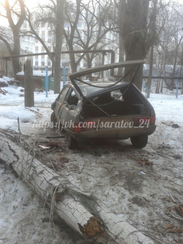 Вчера в Октябрьском районе Саратова в районе Саратовского государственного технического университета рухнувшее дерево раздавило вазовскую «восьмерку». Об этом в группе «Саратов онлайн» сообщили очевидцы. На прикрепленной фотографии рядом с искореженной машиной лежит внушительных размеров ствол тополя.