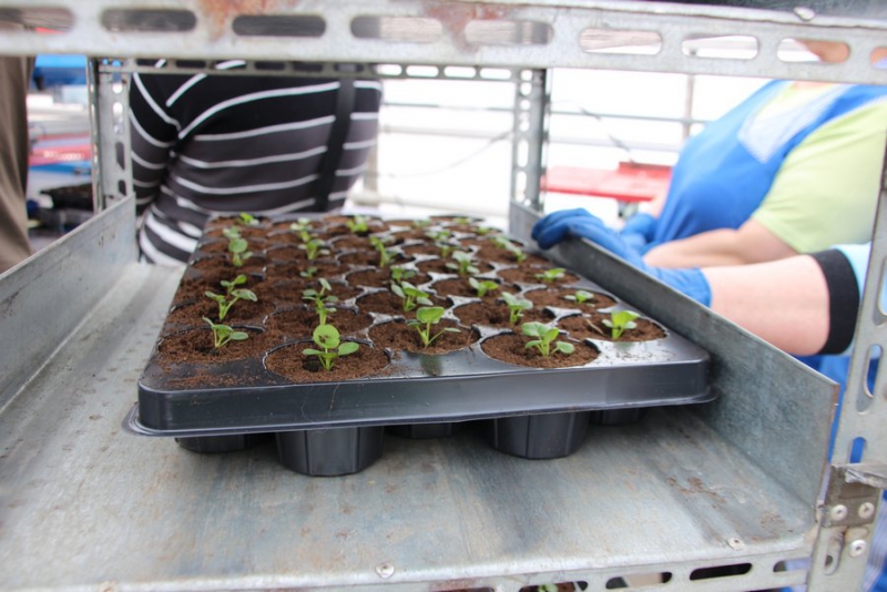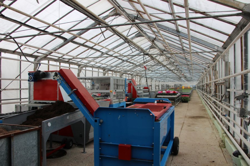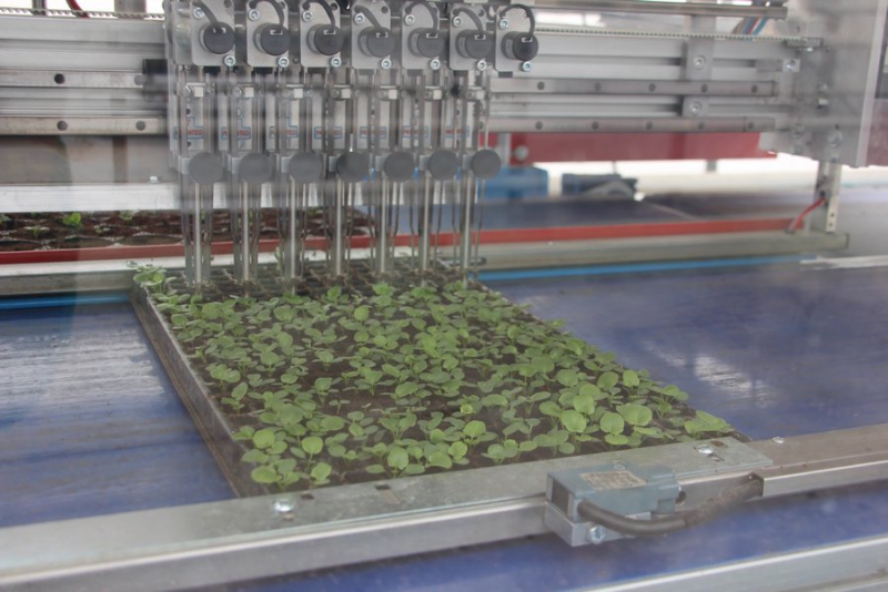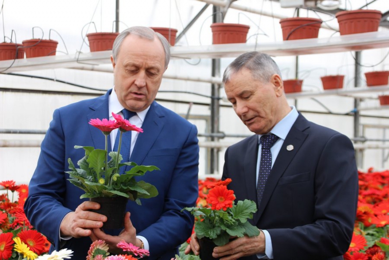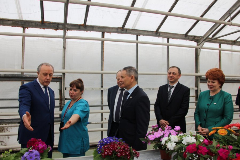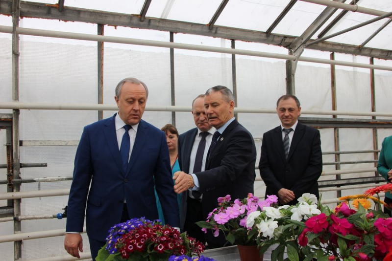 Губернатора провели по теплицам, где ему рассказывали, как организована работа. Радаеву показали машину, которая сама сажает цветы.