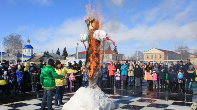 В Татищеве Саратовской области широко отмечали Масленицу. В воскресенье на стадионе «Олимп» собрались жители и гости райцентра на встречу весны.