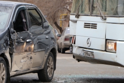 По предварительной информации, автобус маршрута №284А следовал по Московской в сторону ж/д вокзала и врезался в автомобиль «Рено Логан», который пытался проскочить перекресток по Комсомольской. Стоит отметить, что данный участок не оборудован светофорами.