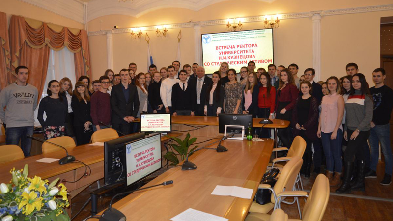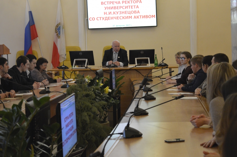 27 февраля 2017 года в университете состоялась встреча студенческого актива с ректором Н.И. Кузнецовым. Руководителем вуза были подведены итоги ушедшего года, озвучены достижения университета в научно-исследовательской и общественной деятельности, отмечены наиболее важные направления образовательного процесса.