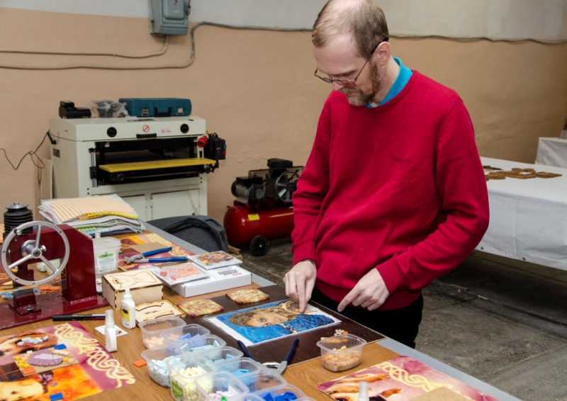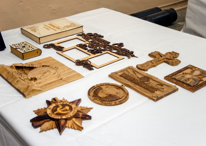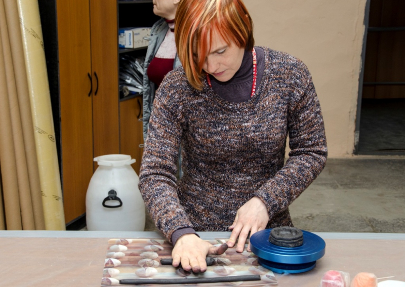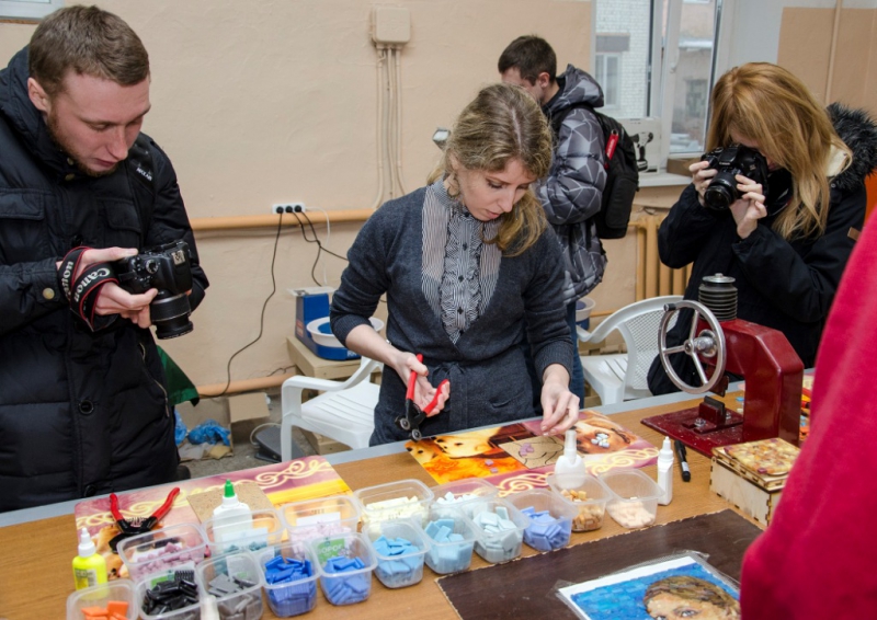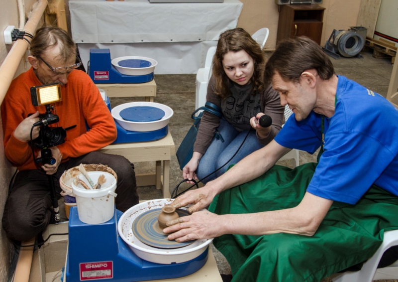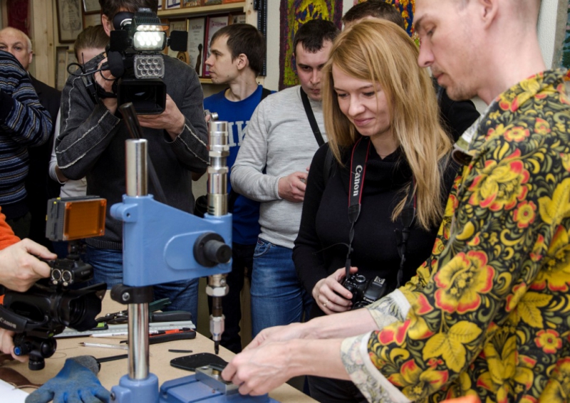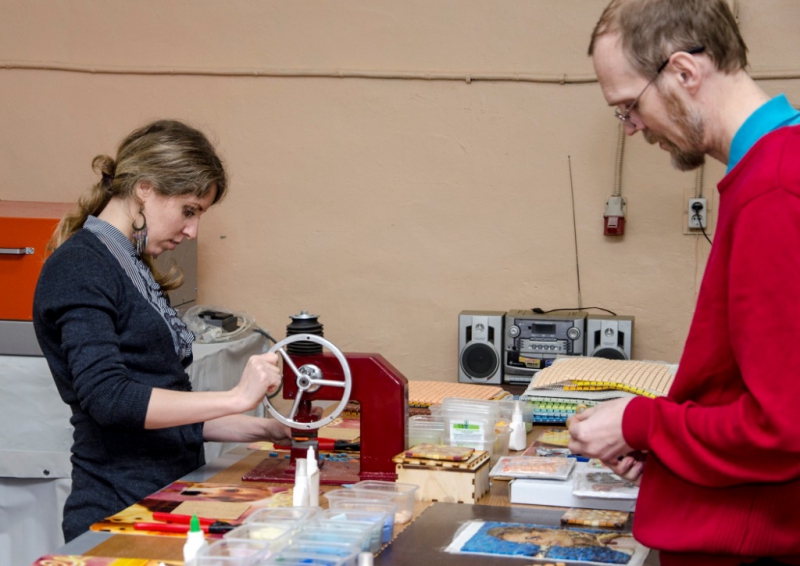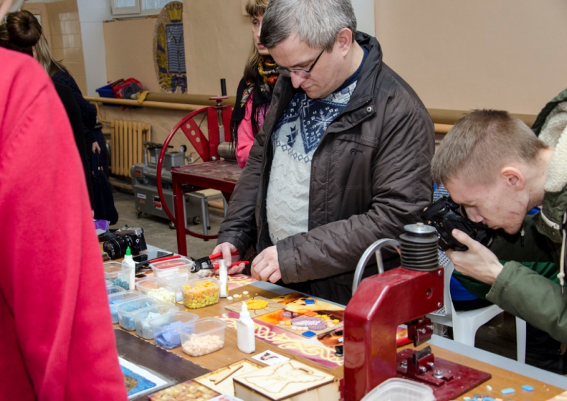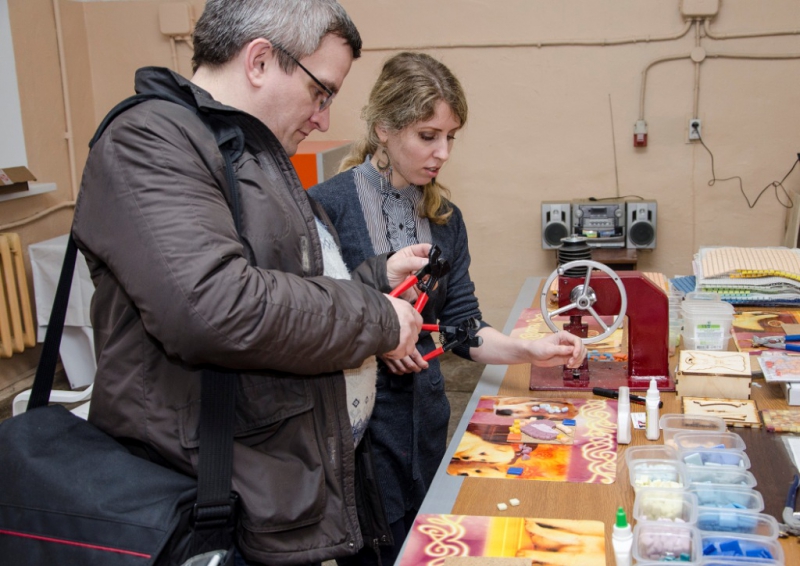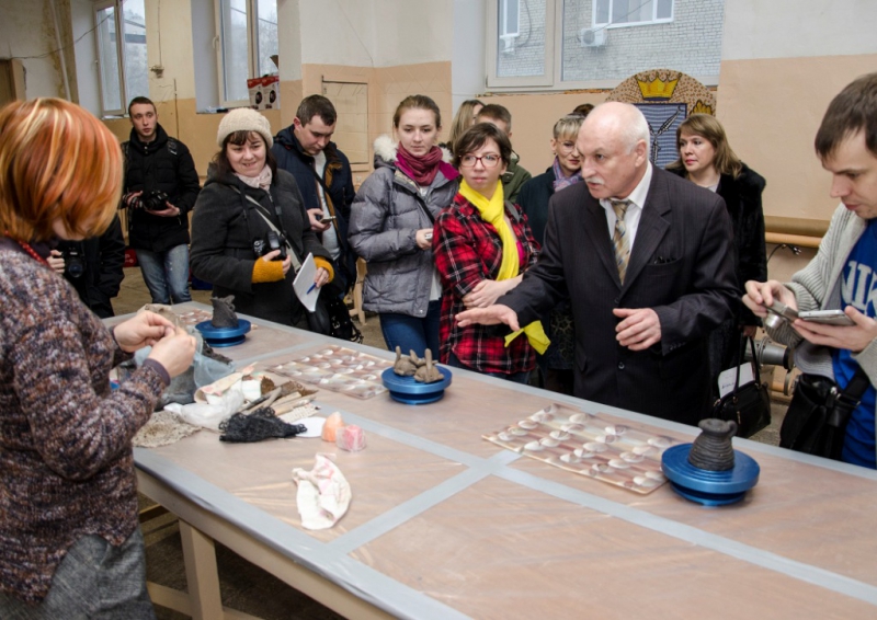 Так, Александр Осокин показал, как работать на станке для распиловки заготовок из древесины или пластика. Секретами изготовления керамики (от замеса глины до обжига готовых изделий в муфельных печах) с журналистами поделилась известный саратовский архитектор, художник-керамист Наталия Макарова. О том, как сделать панно и картины из смальты, рассказали и показали художники-мозаичисты Вадим Руфанов и Ирина Толкачева.