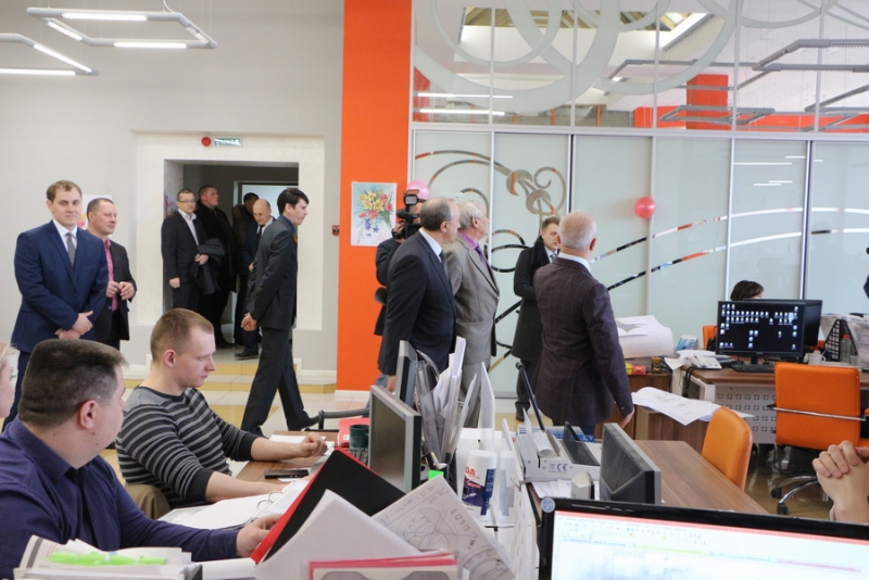 Затем губернатору показали работу конструкторского бюро завода. Как заметил руководитель предприятия, «здесь собраны мозги более широкого профиля». Валерий Радаев обратил внимание, что в этом подразделении работают и женщины.