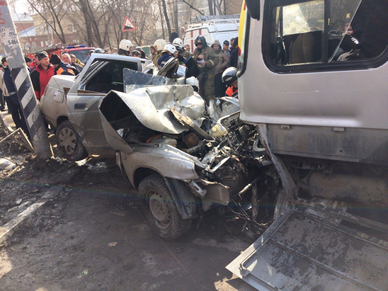 По словам очевидцев, при спуске с Кумысной поляны у пассажирского транспорта отказали тормоза. Автобус практически раздавил «ВАЗ».