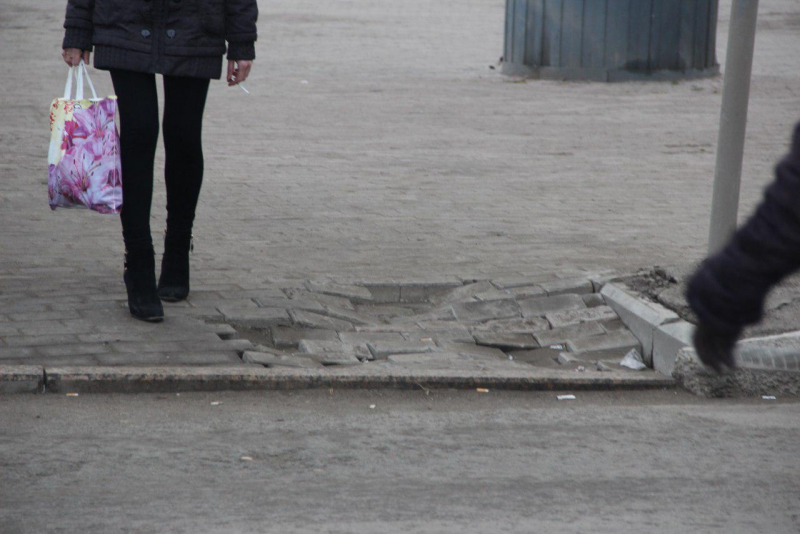 Как сообщает корреспондент ИГ «Четвертая Власть», сделано это было не очень аккуратно, в результате пешеходная зона пошла «волнами» - «перепад высот» плитки составляет несколько сантиметров.