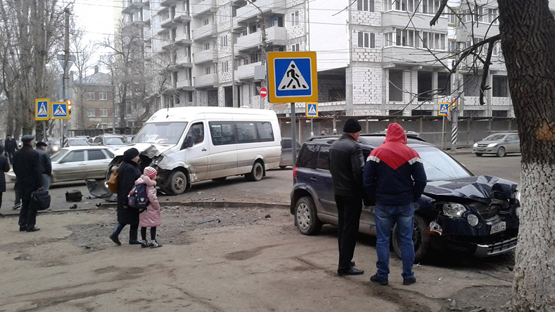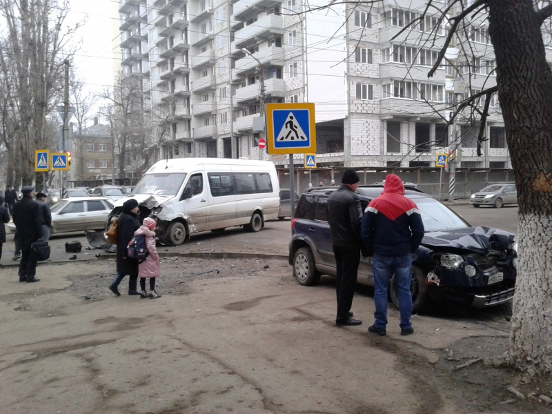 Женщина за рулем кроссовера протаранила маршрутку в центре Саратова