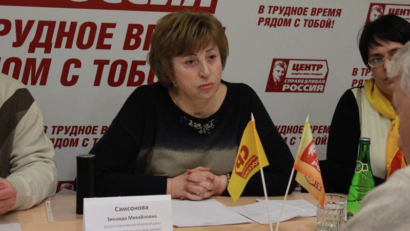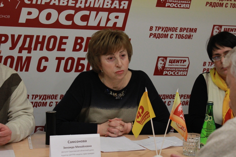 Сегодня в Центре защиты прав граждан Саратова прошла встреча руководителя регионального отделения партии «Справедливая Россия» Зинаиды Самсоновой с жителями города. Все желающие могли пообщаться с депутатом областной думы и рассказать ей о своих проблемах, сообщает пресс-служба реготделения партии.
