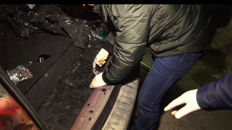 Скрываясь от преследования, супруги начали избавляться от наркотиков, выбрасывая их из салона. Часть пакетов с синтетическим веществом были повреждены, и содержимое рассыпалось в багажном отделении. Двигаясь в направлении Саратовской области, злоумышленники были вынуждены свернуть с трассы, так как сотрудниками полиции УМВД по Пензенской области дорога была перекрыта. В результате автомобиль заехал в тупик. Мужчина, чтобы скрыть следы наркотиков, облил салон автомобиля бензином и попытался его поджечь.