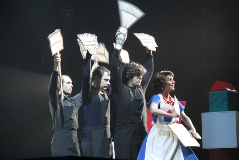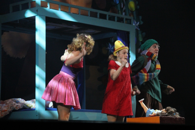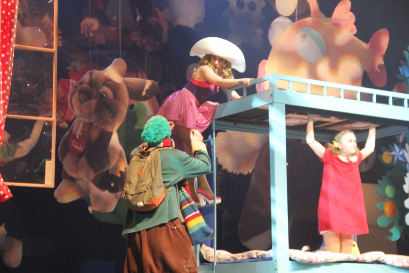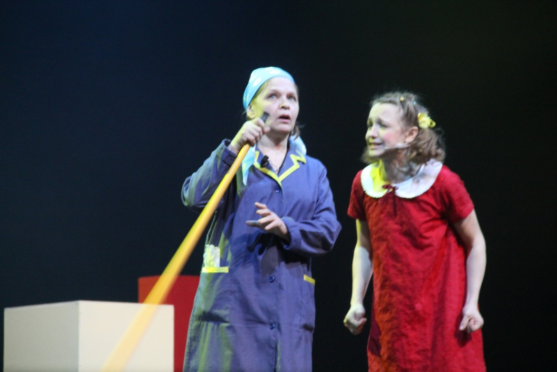 Спектакль получился зрелищным, особенно для детей. Персонажи летают над сценой и проваливаются в люки, в постановке используется мультипликация. Кроме того, спектакль получился очень музыкальным. Специально для него две песни написала актриса ТЮЗа Елена Краснова.