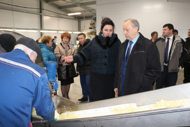 Валерий Радаев посмотрел, как работает оборудование, пообщался с работниками. К концу обхода у многих гостей начали проступать слезы от въедливого запаха лука. Врио губернатора пошутил, что производство «очень нужное, но болезненное«, протирая глаза.