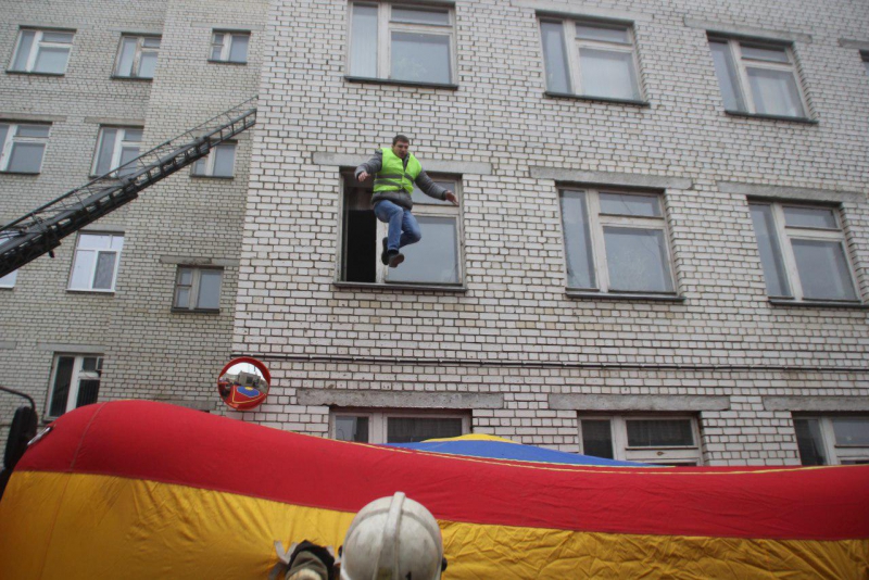 Пожарные ловили выпрыгнувшего из окна мужчину