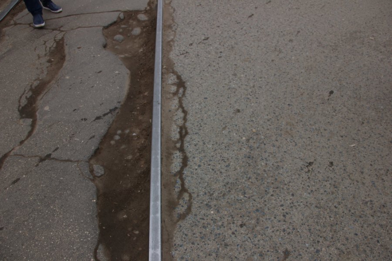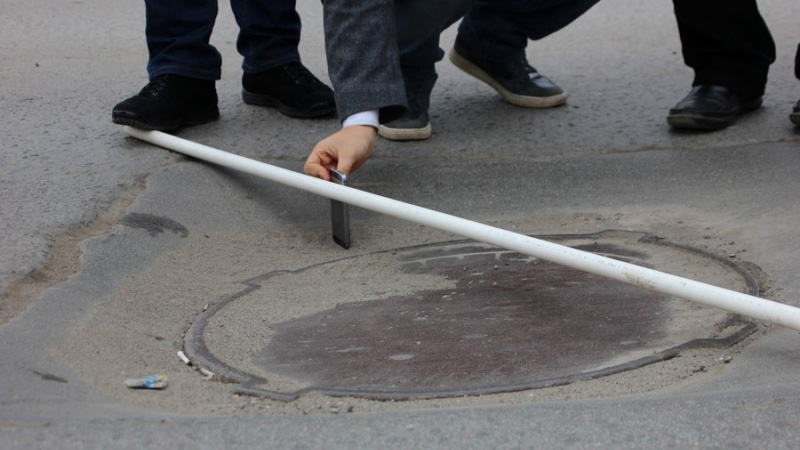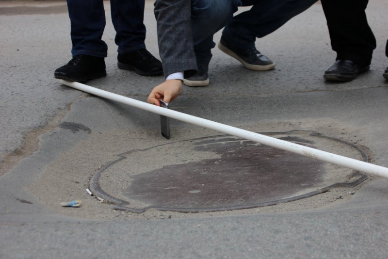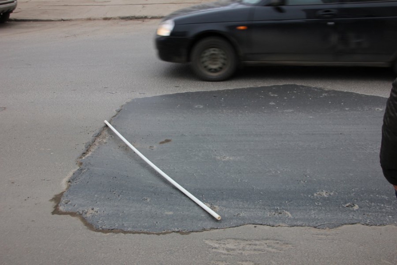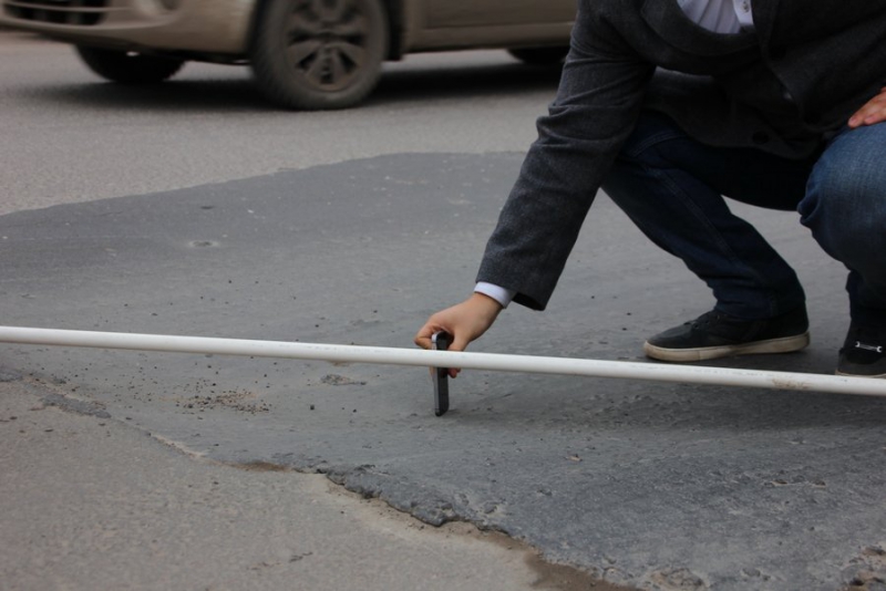 Первым пунктом стала улица Чернышевского, район медицинского колледжа. Здесь общественники увидели провал на заплатке размерами около двух метров в ширину и трех в длину. Члены ОПы замерили его при помощи палки и выяснили, что глубина проседания не менее 7 см.