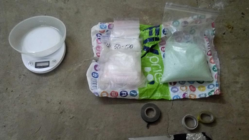 Мужчина был задержан в ходе оперативных мероприятий. В карманах куртки у него нашли около 100 г смеси, в состав которой входит наркотическое средство синтетического происхождения. При обыске в гараже и квартире также были найдены наркотики, общий вес которых превысил килограмм.