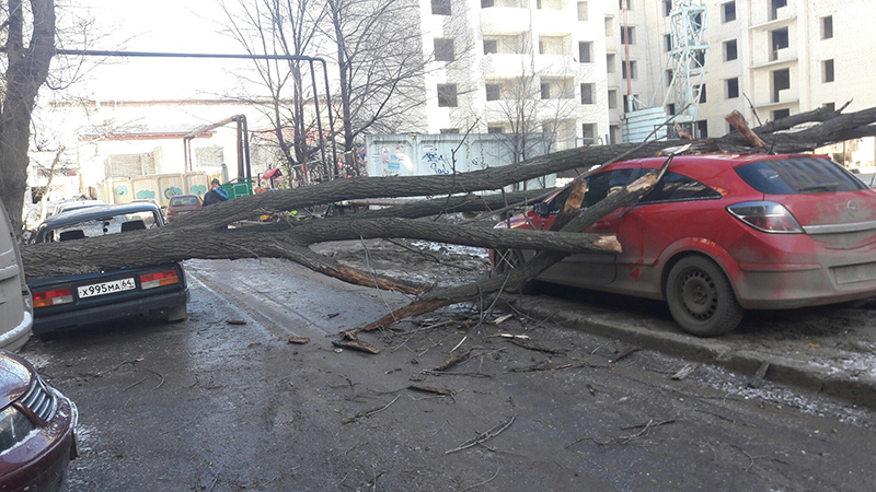 В Саратове два автомобиля пострадали в результате падения дерева