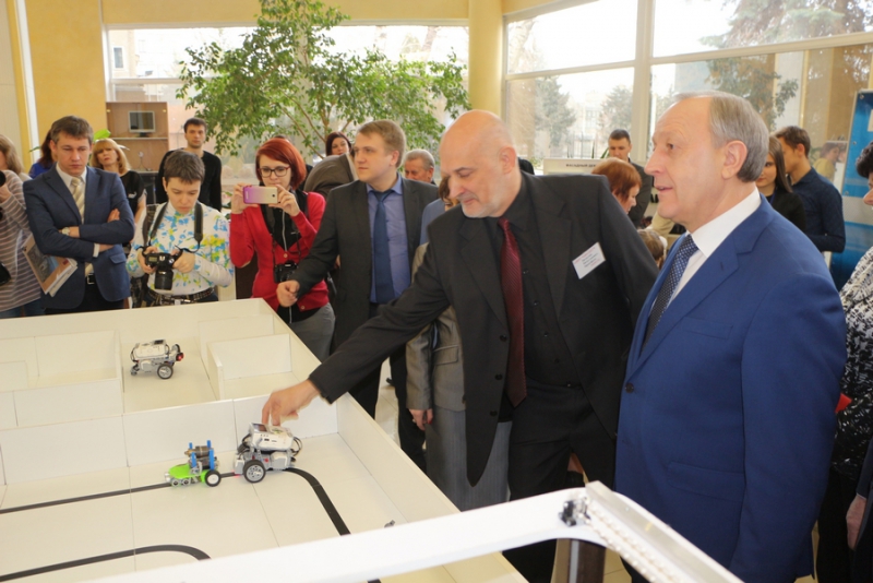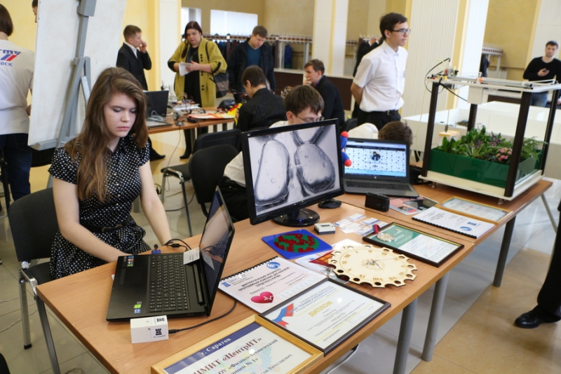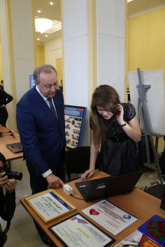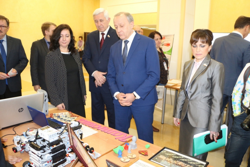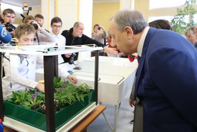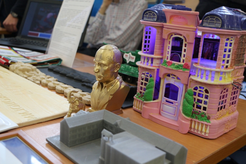 В фойе регионального правительства была развернута выставка с образцами различных технических средств, разработанных школьниками в ЦМИТах. Главе региона показали небольшие фигурки, напечатанные на 3Д-принтере, а также рамки для фотографий.