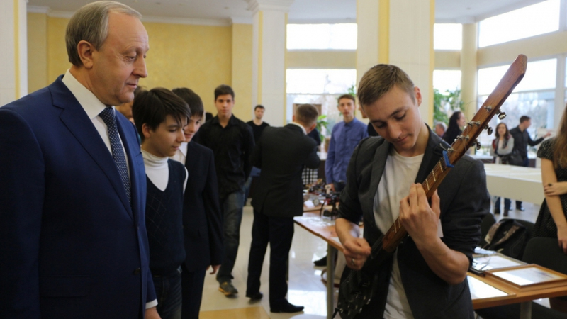 Кроме того, Радаев послушал музыку на необычном музыкальном инструменте – лопате со струнами. Сыграл для него воспитанник петровского филиала СГТУ. Впрочем, журналистам не удалось узнать мелодию.