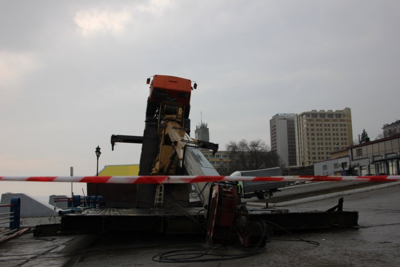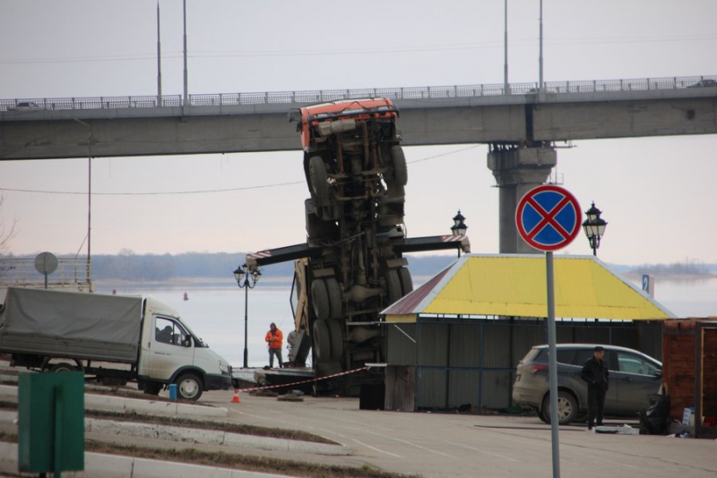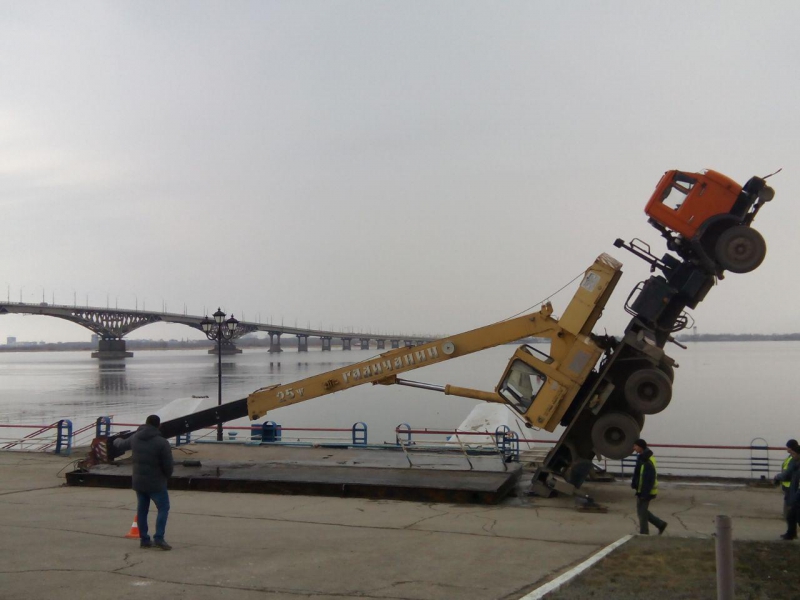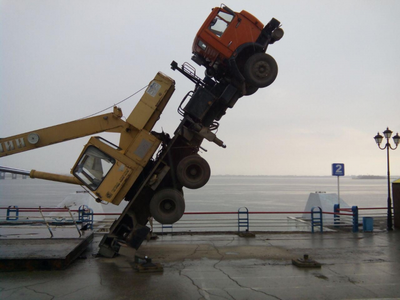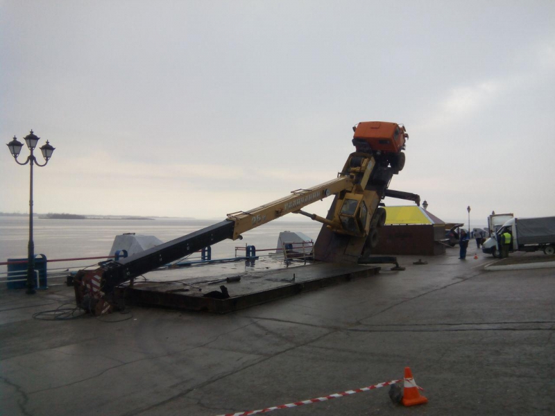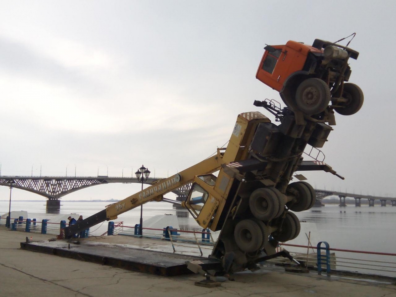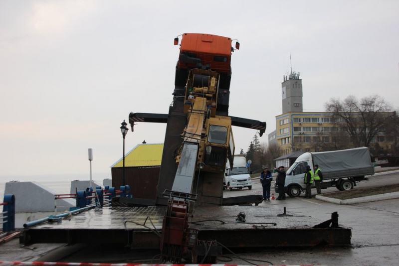 Вставший «на дыбы» на набережной Саратова грузовой кран пытался поднять металлическую конструкцию - плиту, но в какой-то момент груз перевесил машину. Об этом ИГ «Четвертая Власть» рассказали очевидцы.