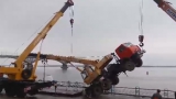 Сейчас на месте дежурят сотрудники полиции. Рабочие ожидают второй кран, чтобы поднять пострадавший автомобиль.