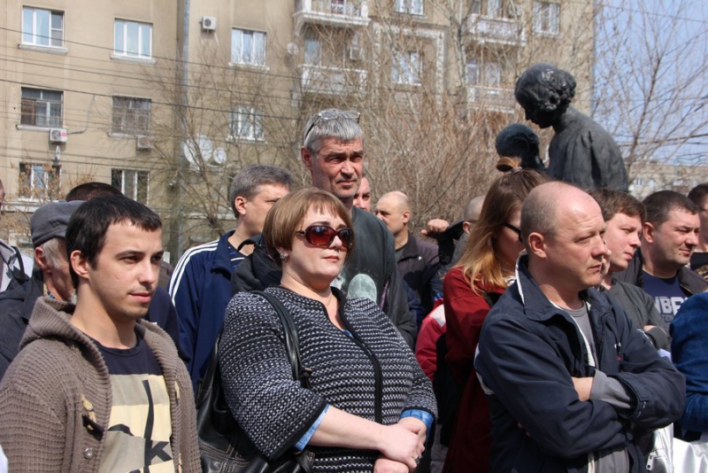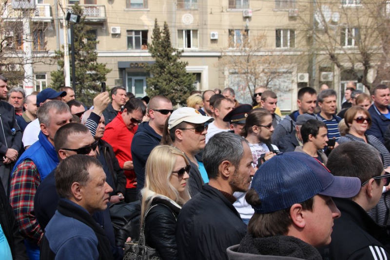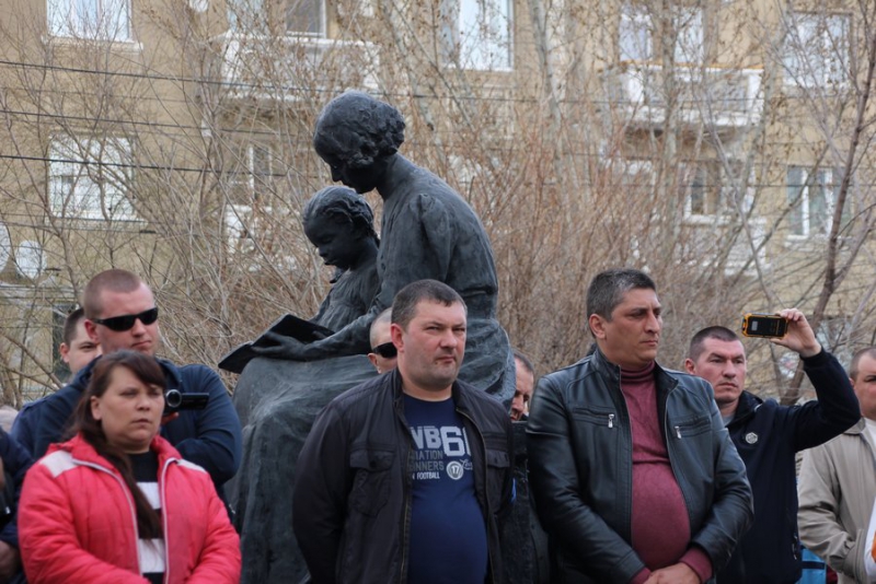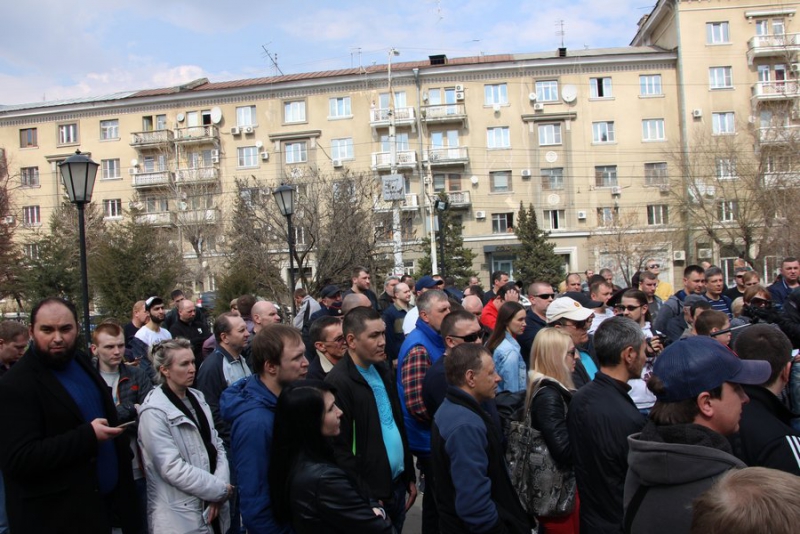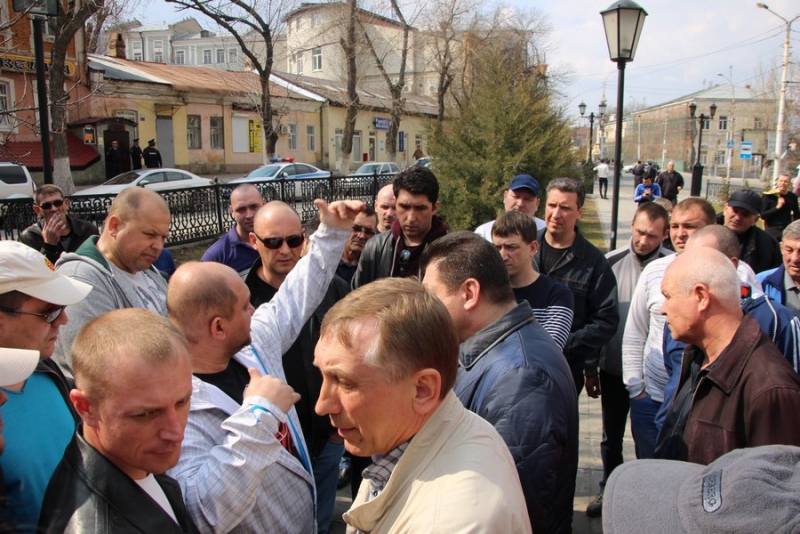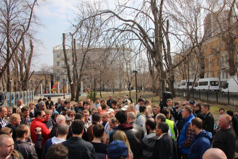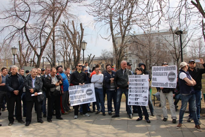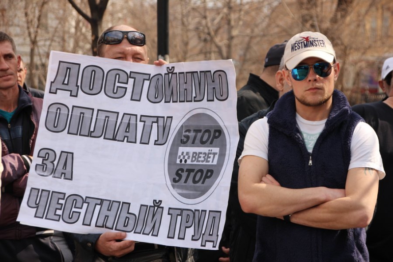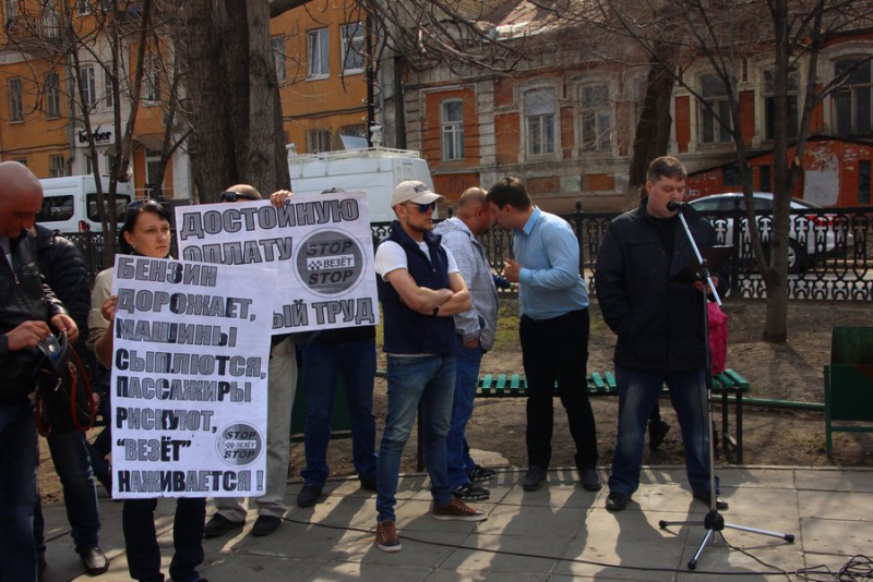 У некоторых митингующих в руках плакаты: «Нас грабят налоги, не платят, власть молчит», «Бензин дорожает, машины сыплются, пассажиры рискуют, «Везет» наживается», «Достойную оплату за честный труд».