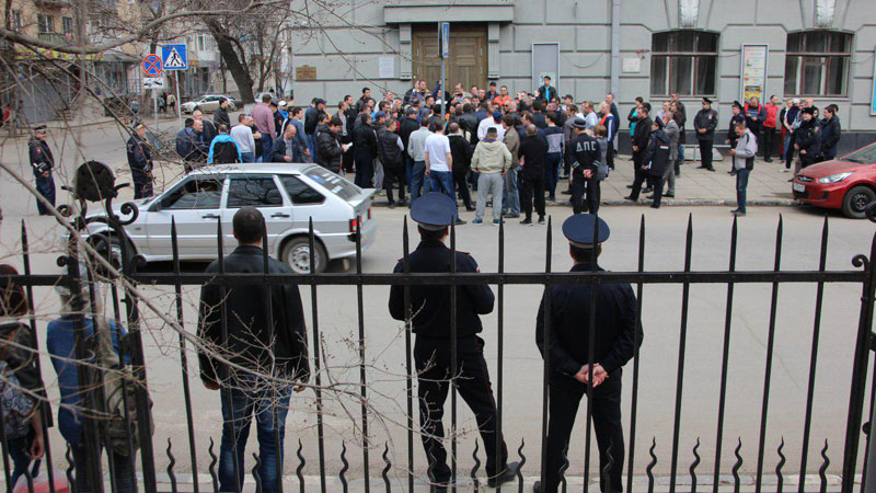 После митинга против низкой оплаты труда они должны были встретиться с общественниками и городскими депутатами в Доме офицеров. Однако когда возмущенные люди прибыли к зданию к 15.00, оказалось, что участники встречи, среди которых были члены Общественной палаты региона и представители компании «Такси Везет», уже разошлись, поскольку ждали их в 14.00. В связи с этим людей не стали пускать внутрь. Приехавшие таксисты начали возмущаться, что их обманули и специально увезли с места проведения митинга. Они потребовали, чтобы с ними все равно поговорили.