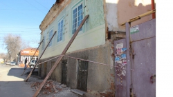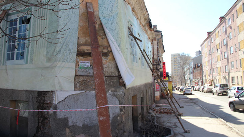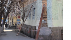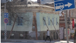 В центре Саратова разрушающийся дом «укрепили» деревянными опорами