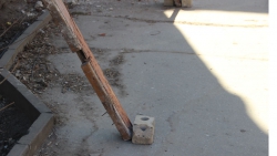Заброшенное двухэтажное здание в Саратове на пересечении Чернышевского и Соляной окружили по периметру «опоры» из длинных досок. Видимо, чтобы они не съехали, внизу на тротуаре их укрепили кирпичами. Какую именно функцию выполняют эти подпорки, непонятно. Возможно, они защищают баннеры фальшфасада от порывов ветра.