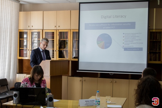 В рамках заседания круглого стола сотрудник Института технологии и бизнеса из г. Ческе-Будеёвице Вацлав Добиаш подробно рассказал о своем научном исследовании «Цифровое неравенство второго уровня». Он также поблагодарил руководство вуза за высокий уровень организации международного сотрудничества с их вузом, за прекрасных и высококвалифицированных преподавателей, талантливых студентов.