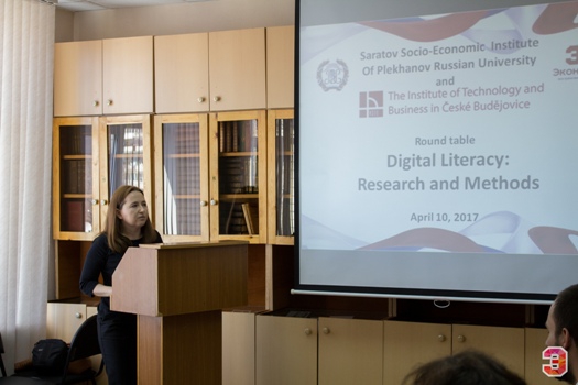 В первый день визита состоялся англоязычный круглый стол на тему: «Цифровая грамотность: исследования и методология» с участием чешских гостей, ученых ССЭИ и других вузов г. Саратова. Заседание «круглого стола» прошло в рамках совместного проекта академической мобильности с Чешским Институтом и Экономом. Зарубежные коллеги в период с 10 по 13 апреля будут активно участвовать в вузовских мероприятиях, среди них – открытие Международного образовательного курса «Взгляд на экономические перемены».